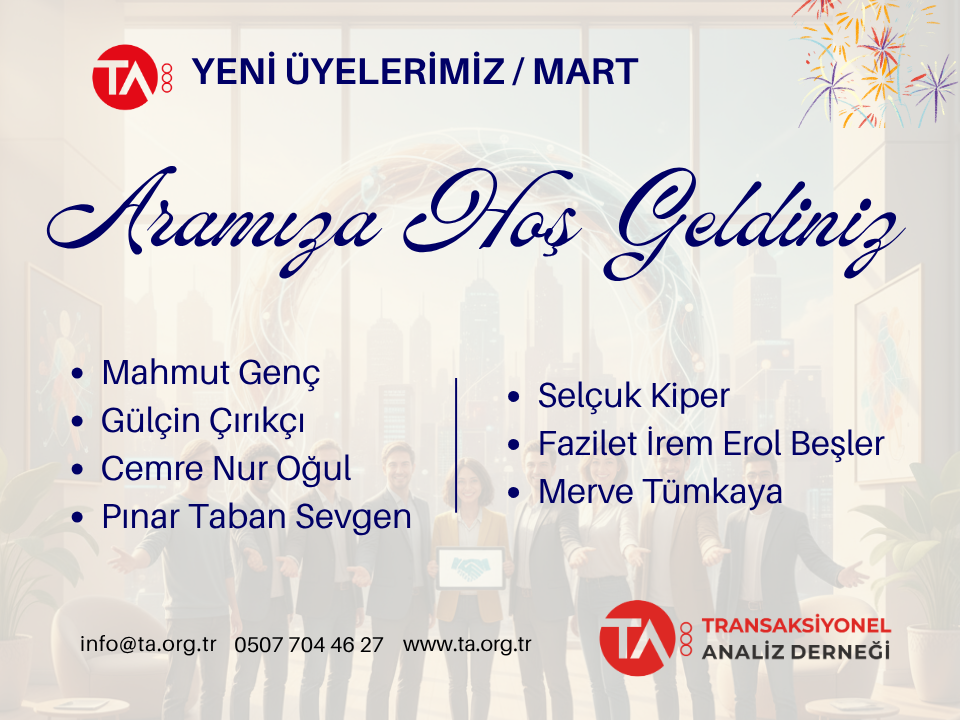 Amacımız; transaksiyonel analizin yöntemlerini, teorisini ve ilkelerini TA’ya ilgi duyan herkesle buluşturmaya yardımcı olmaktır. Üyelerimiz arasında psikoterapistler, psikologlar, profesyonel koç ve mentorlar, eğitimciler, organizasyonel gelişim uzmanları ve danışmanlar bulunmaktadır.