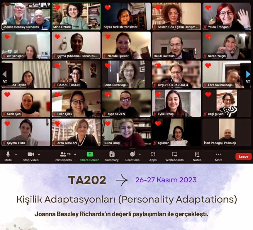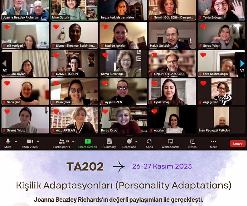 26-27 Kasım 2023 tarihinde TA Derneği ve Walden Psychology Institute & College işbirliği ile düzenlenen “TA 202: Kişilik Adaptasyonları (Personality Adaptations)” eğitimi Joanna Beazley Richards’ın değerli […]