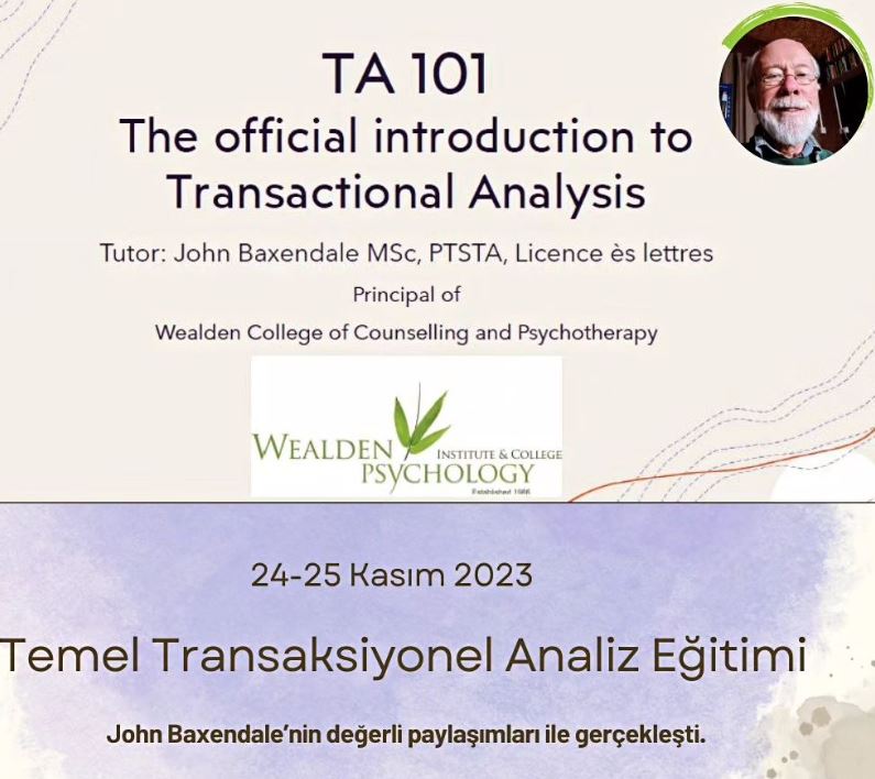 24-25 Kasım 2023 tarihinde TA Derneği ve Walden Psychology Institute & College işbirliği ile düzenlenen “TA101 Temel Transaksiyonel Analiz” eğitimi John Baxendale’in değerli paylaşımları ile gerçekleşti. […]